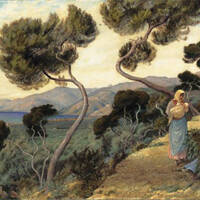 Probably not painting referred to in the catalog but similar to the description re place and composition. Painting entitled "Bordighera" and exhibited at the Grosvenor Gallery in 1882 as "Path Under the Olives, Bordighera."