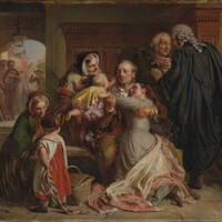 A family reunion scene shows an emotional embrace between a seated man and woman, surrounded by children and elders. A lawyer stands beside them. In the background, people gather near a building entrance.