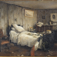 Painting is by Denizard not by Dorothy Tennant but possibly copied it? 'La chambre mortuaire de Gambetta, dans sa villa des Jardies, à Ville-d'Avray, janvier 1883,' by Denizard from Paris Musees Collections