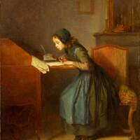 Option, on somewhat similar theme, is "At Her Lessons" (before 1865). Available in public domain via CC BY-NC