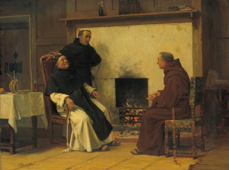 The monks are being armed against the enemies of the church, and Cardinal de Guise is looking on and conversing with the officers. The monks seem to be poor recruits, and make an awkward squad. For some of them life has been so empty that even danger cannot arouse them; and there are others whole "warfare is not of this world," and who have found much in life that is not to be won by fighting.