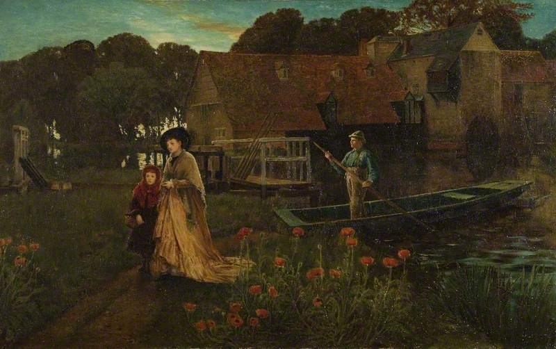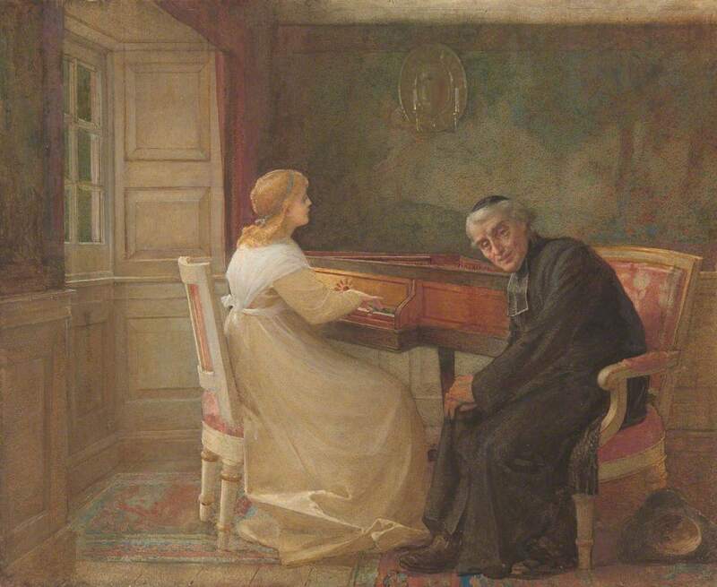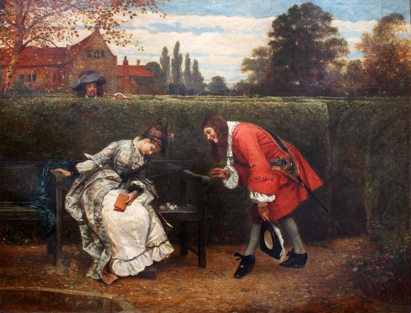 There were mazes such as the one at Hampton Court, in most old fashioned gardens. The lover behind has lost his way and is listening to his rival's success.