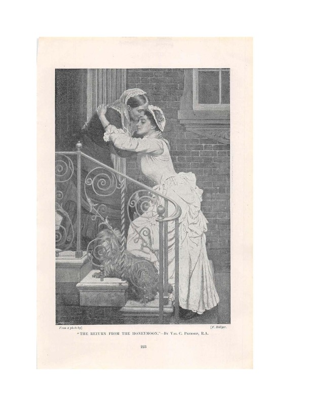 In Venice, where there are no streets but only canals, boats, or "gondolas," take the place of cabs. The gondolier on the right is stopping on his way to talk to his wife and child at the window, and the girls on the left are enjoying a gossip over their water carrying. The Venetians are as bright and sunny as their city.